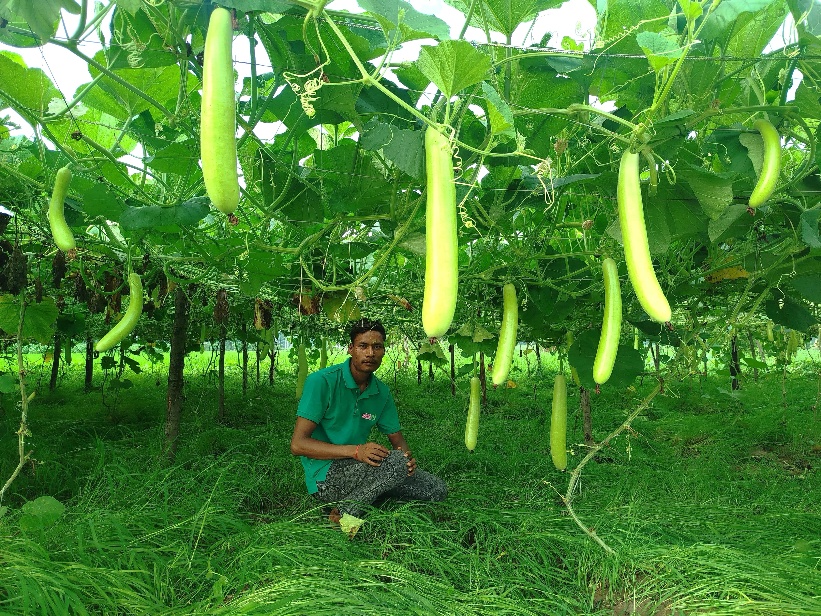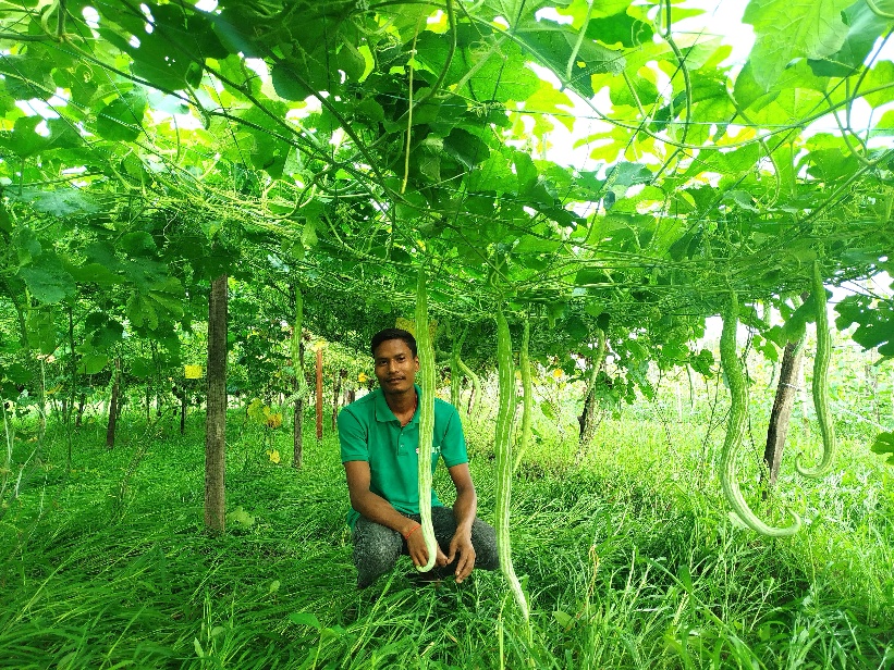 Not only did he receive valuable knowledge, but he was also supported with vegetable seeds and bio-fertilizer kits, helping him to take his first steps into vegetable farming. Motivated and better equipped, Puran began cultivating vegetables on his once-unused land. Within months, his fields transformed into a vibrant patch of green, flourishing with crops such as gourd, pumpkin, bitter gourd, okar, and cowpea.