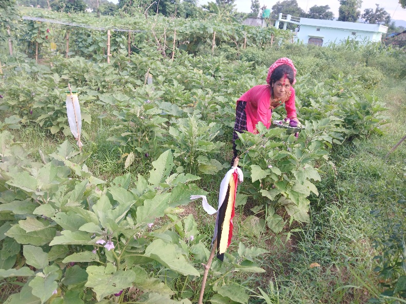 Janaki Chaudhary, a 36-year-old married woman, is a resident of Shuklaphanta-5, Garjamuni, Kanchanpur. She lives in a joint family with her in-laws, husband, and sons, comprising six family members. Before joining the Farmer Field School (FFS) group formed under the Skill Up Project, Janaki and her family practiced traditional farming methods. Their financial condition was weak, and Janaki lacked confidence in communicating with others. She was unaware of improved agricultural technologies, quality seeds, organic fertilizers, and organic pesticides. She sold vegetables by carrying them in a basket on her head and relied heavily on chemical fertilizers and pesticides without understanding their long-term impacts. Janaki had no knowledge of crop selection according to weather conditions or market demand. She was also unfamiliar with group formation, leadership, nutrition, government subsidies, and proper record-keeping.
